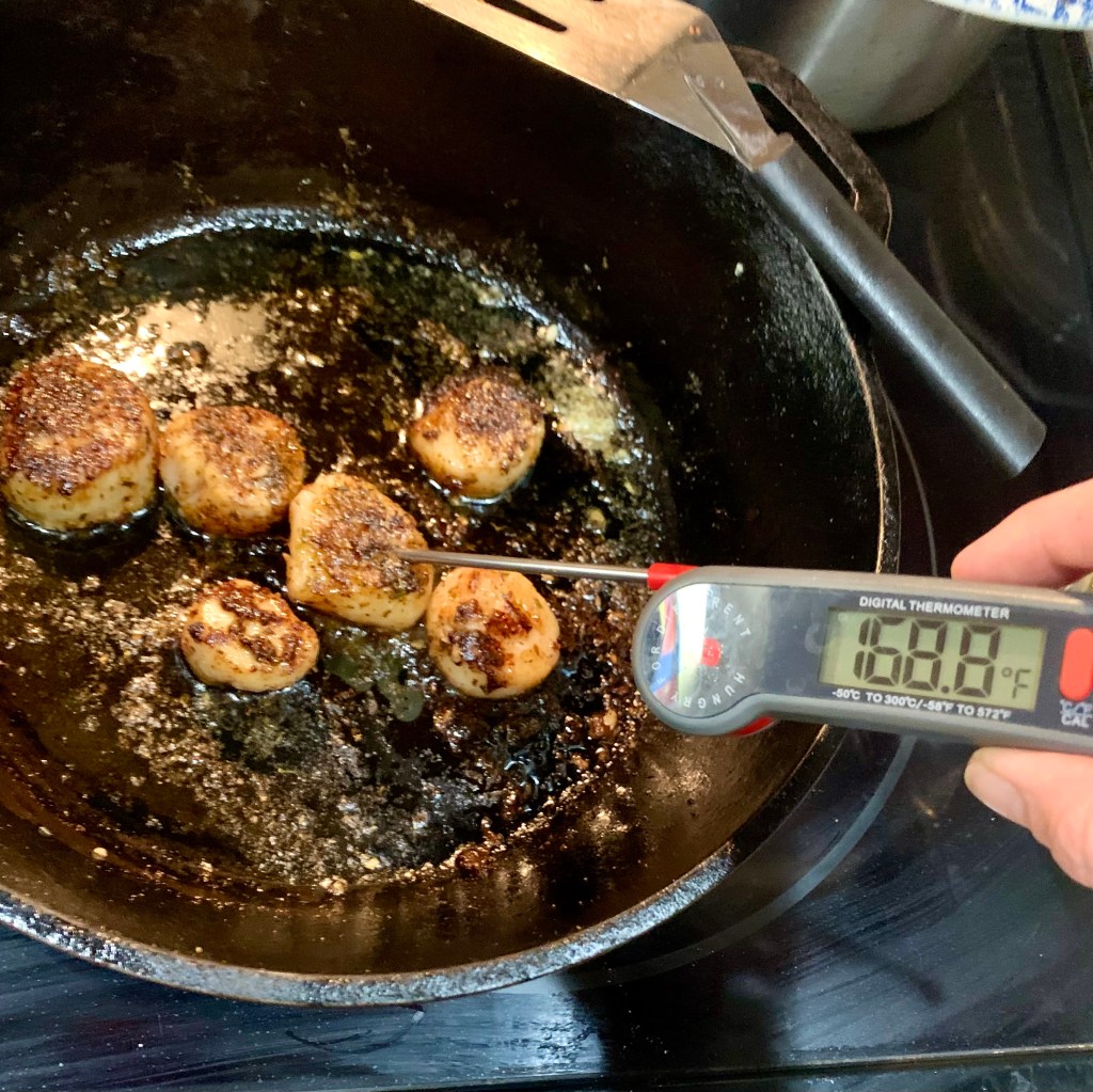 - 1 Pound Sea Scallops, (roughly 12-13 scallops) pull off backstraps and pat dry with paper towel. Keep cold until ready to cook