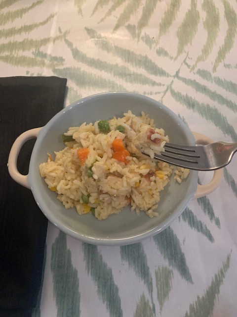 Country Chicken and Rice is a comforting classic that never gets old. Here I’ve used diced grilled chicken and chicken broth with vegetables. Variations include using turkey, poached chicken or adding creaminess with cream of chicken soup and mixing up the veggies added for heartiness, flavor, fiber, and nutrition. You can also add quinoa to the rice for an interesting textured blend. It’s done in twenty minutes.