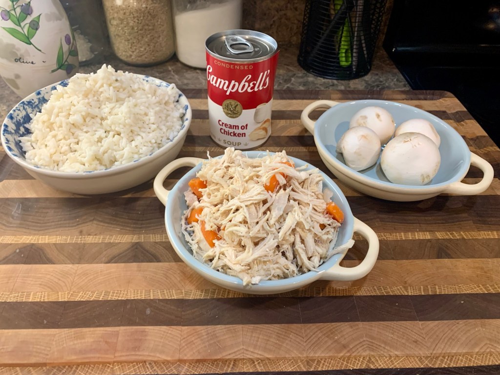 Creamy rice, tender chicken, and vegetables baked together make a yummy one-pan comfort meal. Here is how to use creamy soup base to make a hearty, healthy, comforting Southern casserole. This easy recipe uses leftovers or prepped rice to create a casserole for 2 to 4 people. Try with one or more of these recipes #collards, biscuits, #squash_fritters, #tea.